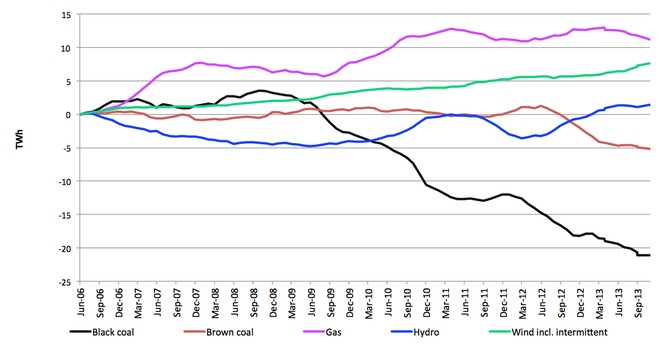 All of the decline in consumption has in fact been at the expense of coal fired generators. Many are now barely profitable. Greenhouse gas emissions fell by 9.2 Mt CO2-e, roughly 2 per cent of Australia’s total emissions, in 2012 alone.