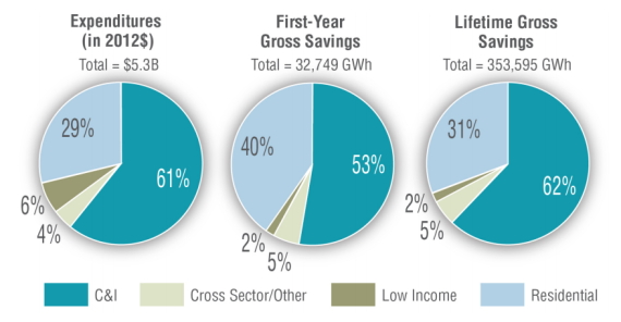 Their findings reveal an incredible return on investment for energy efficiency spending. A total of $5.3 billion dollars was spend on efficiency programs and returned a first-year total of 32,749 gigawatt-hours (GWh) gross savings, with 353,595 GWh projected lifetime gross savings.
