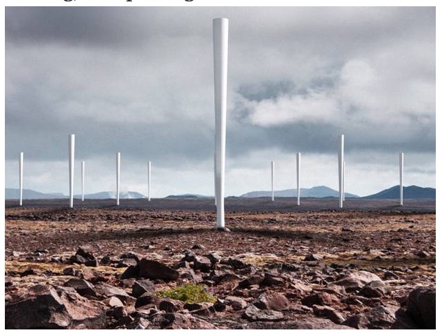Vortex, a startup from Spain, has developed the tall sticks known as Bladeless — white poles jutting out of the ground, that are built so that they can oscillate. They do so as a result of the way that the wind is whipped up around them, using a phenomenon that architects avoid happening to buildings and encouraging it so that the sticks shake.