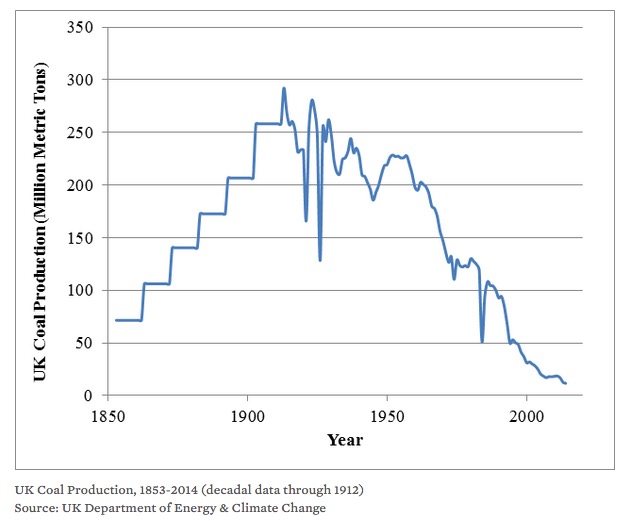 Well, the sunbeams are now collected, forces unknown to Jevons are harnessed, and UK coal production is well below what it was in 1865.