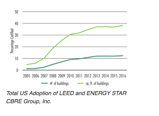 Whether it is President Trump’s proposed budget or Scott Pruitt’s rollback of EPA policies, the federal government appears to be walking backward when it comes to progress on sustainability. However, the real estate community is running forward; in cities across the U.S., more buildings are green certified than ever before. This is a promising sign that even as federal priorities wander, building owners and operators recognize that efficiency continues to make sense.