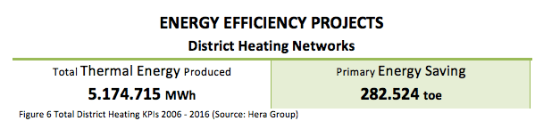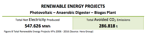 Hera established specific key performance indicators (KPIs) for each project to monitor their performance over time.[i] Below is a snapshot of the aggregated results for the energy efficiency and renewable energy project’s category for the period 2006 – 2016.