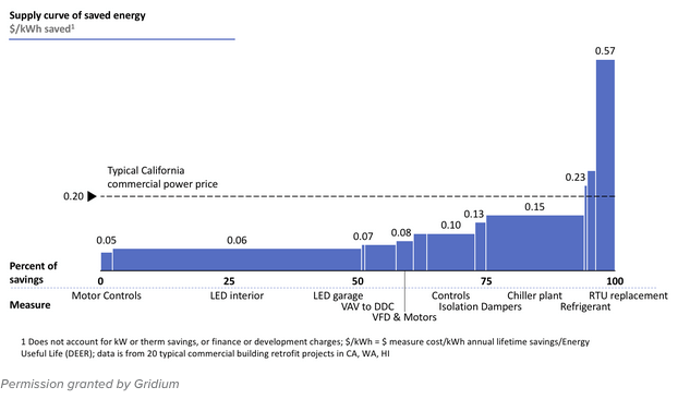 But subsidies are not solving the actual problem. The chart below shows the non-subsidized supply curve of energy efficiency that we’ve seen in some of our projects in California, Washington and Hawaii this year: