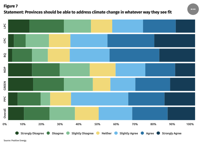 The survey was conducted online between September 9-29, 2019 using Qualtrics Services. We surveyed 2,679 Canadians with five regional subsamples of over 500 (BC, Prairies, Ontario, Quebec, Atlantic Canada). Margin of error is not applicable for this survey type, but a traditional survey with this sample size would yield a margin of error of +/- 2 percent for the national sample and +/- 4 percent for regional subsamples. Graphic analysis (90+ slides) for this discussion is available on Positive Energy’s website.