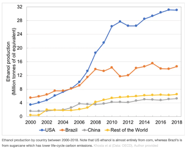 A third success story is that of Brazil’s long-term growth to become the largest producer, exporter and market for ethanol biofuel made from sugarcane.