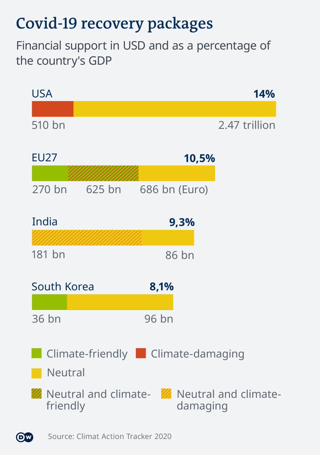 The report focuses on the investment plans of five countries: China, the US, the EU, India and South Korea. “In addition to the EU, South Korea has deliberately put a green focus on coronavirus aid with its Korean Green New Deal,” said Höhne. But it is not yet possible to predict exactly how India’s plans will affect the climate.