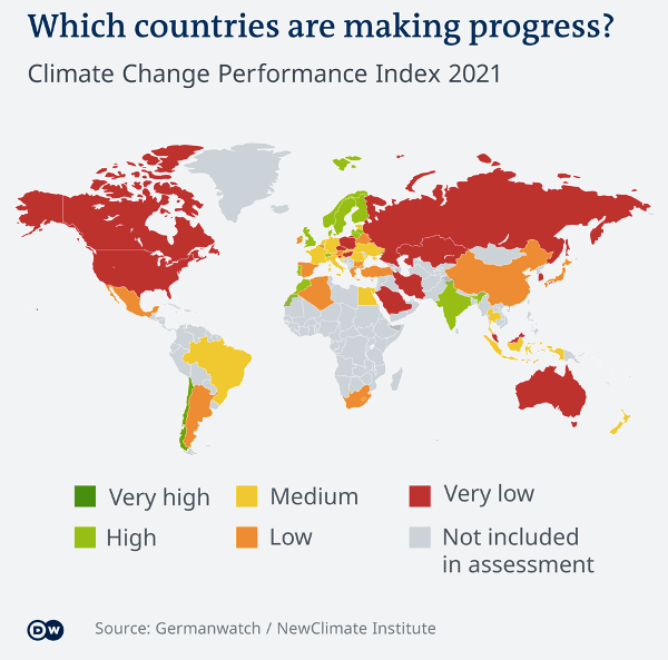 No country has yet achieved the goals of the Paris Agreement, according to the Climate Change Performance Index from NGOs Germanwatch and the NewClimate Institute. Gero Rueter writes on the Deutsche Welle website about the results from the most recent index. How is your country doing?