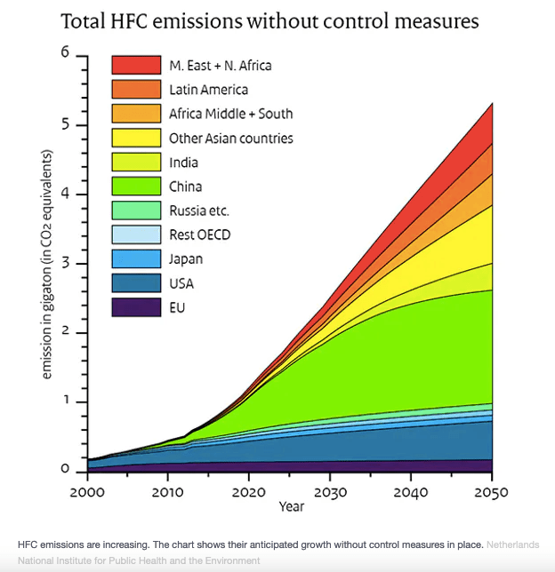 This is why it’s time to retire HFCs and swap them out for alternative refrigerants. They’ve done their job saving the ozone layer, but now HFCs are a major contributor to short-term global warming, and their use has been increasing as demand for cooling increases around the world.