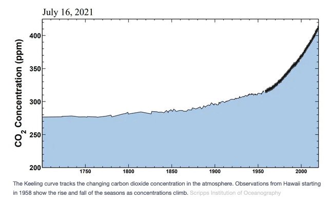 By the 1800s, human activities were already dramatically increasing the carbon dioxide in the atmosphere. Burning more and more fossil fuels – coal and eventually oil and gas – added an ever-increasing amount of carbon dioxide into the air.
