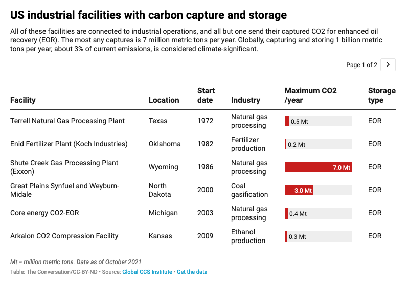 In industrial facilities, all but one of the dozen CCS projects in the U.S uses the captured carbon dioxide for enhanced oil recovery.