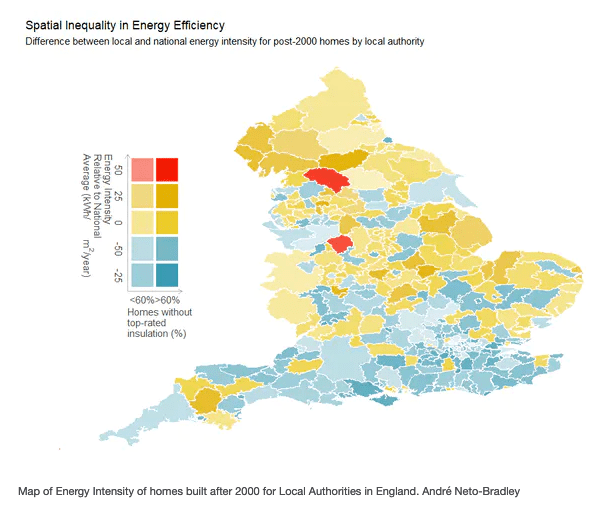 In the UK, the government recently announced a £5,000 subsidy for households to install heat pumps. The measure is part of a policy which aims to phase out installation of gas boilers by 2035, with a view to making building stock net zero by 2050. However, this assumes that heating demand is relatively even across the country and doesn’t consider the impact of regional inequality in energy efficiency.