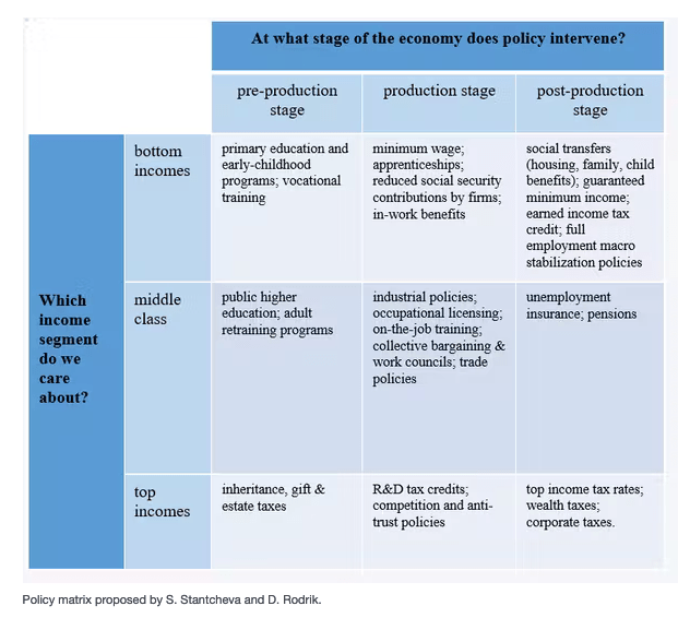 If existing growth processes do not trickle down and exclude potentially productive sections of the population from participating in the economy, then a starting point for thinking about what it might mean to build back differently should be a detailed interrogation in each country context of the multidimensional inequalities that restrict inclusion. Economists Dani Rodrik and Stefanie Stantcheva provide a useful framework to use (see below).