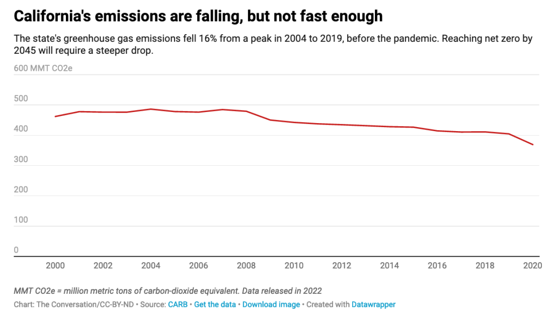 Will California make it? The state has a track record of exceeding its goals, but getting to net zero by 2045 requires a sharper downward trajectory than even California has seen before, and there are still many hurdles.