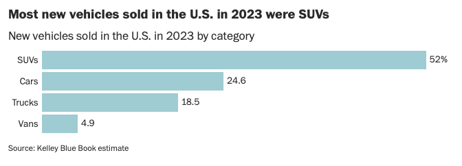 In response, automakers shifted production from sedans to SUVs, which tend to be more profitable and less fuel efficient, according to Mark Schirmer, a spokesperson for Cox Automotive, an auto industry research firm.