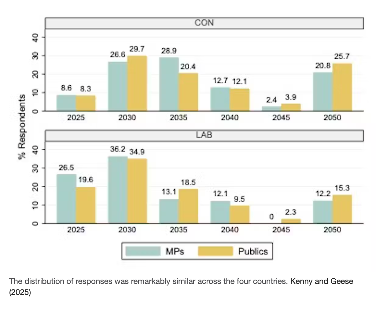 Partisan divides reinforce the problem. In our survey, 2019 Labour voters were more likely to know the correct 2025 deadline than those who voted Conservative. Political differences in knowledge were greater than the gap between MPs and the public, suggesting that party identity or political ideology, not just parliamentary expertise, is a factor in level of awareness.
