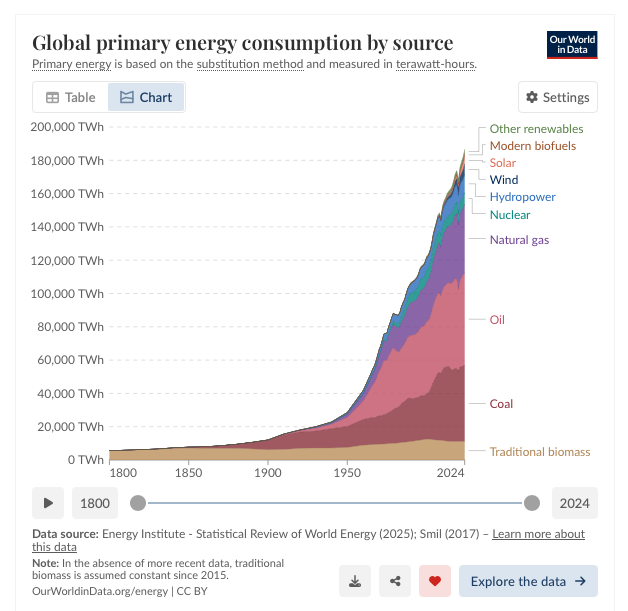 Graphs of primary energy make it seem almost impossible to end our long reliance on fossil fuels.