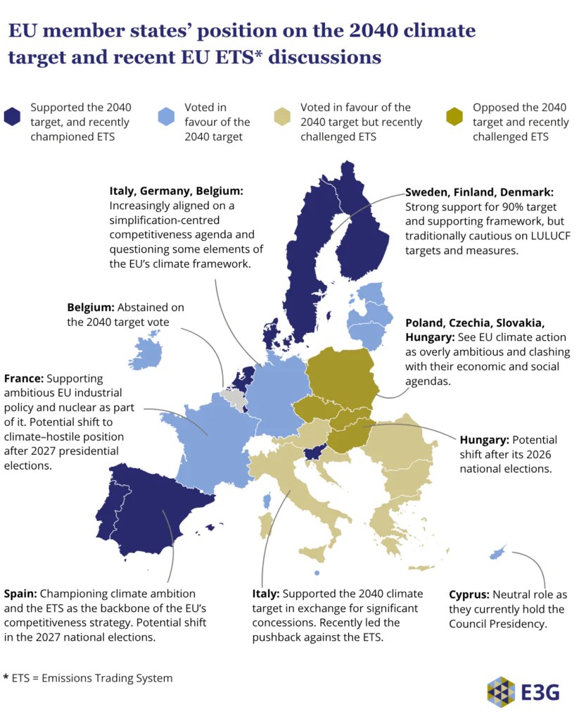 The position of the EU countries during the 2040 climate target negotiations and recent discussions on the future of the EU ETS indicate that the review will be highly contentious. Amid pressure from parts of industry and continued support from progressive businesses and civil society, the Commission will try to balance long-term objectives with demands for simplification and flexibility. At the same time, the two possible Parliament majorities will simultaneously pull towards stability and rollbacks.