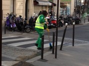 Montmartre is a major tourist area in Paris, but first of all it is a village for locals.  The main sidewalks are swept daily.  You will see in the photo that there is water flowing down the road.  The sweepers take the water to clean the sidewalks.  In the tourist areas, the sweepers are out at 6:30 a.m. every day to get the area ready for that day’s tourists.  In the evening, there are many who sit in front of La Basilique du Sacré Coeur until all hours of the evening. They leave a tremendous mess.  But by 9 a.m. all is taken care of.